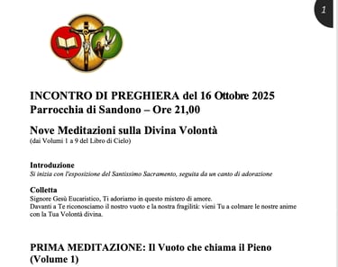 In comunione con la Chiesa, operiamo perché il Regno della Divina Volontà si diffonda nei cuori e nel mondo, preparando la venuta del Suo trionfo d’amore.