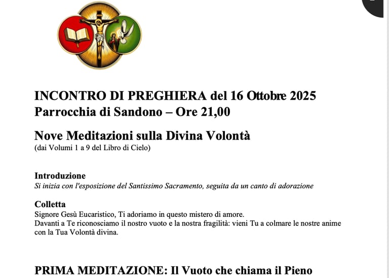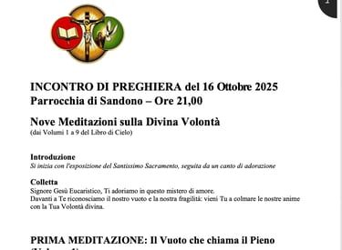 Incontri di formazione, adorazione e meditazione degli scritti del Libro di Cielo alla luce della Parola di Dio